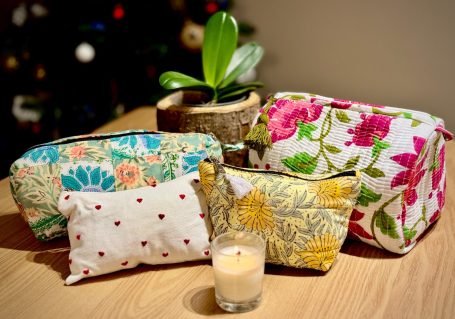 - Des vanity matelassés, de 3 tailles différentes. (Grands, mpyens et babys) Offrant des poches intérieures, imperméables.